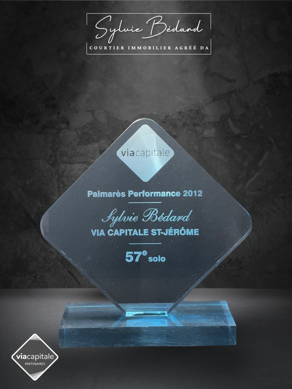57e position sur près de 1400 courtiers chez Via Capitale pour l'année 2012 à travers le Québec