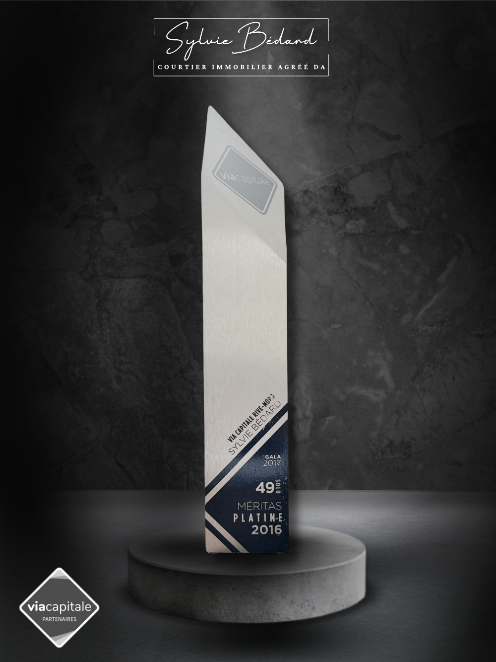 49e position sur plus de 1200 courtiers chez Via Capitale pour l'année 2016 à travers le Québec.