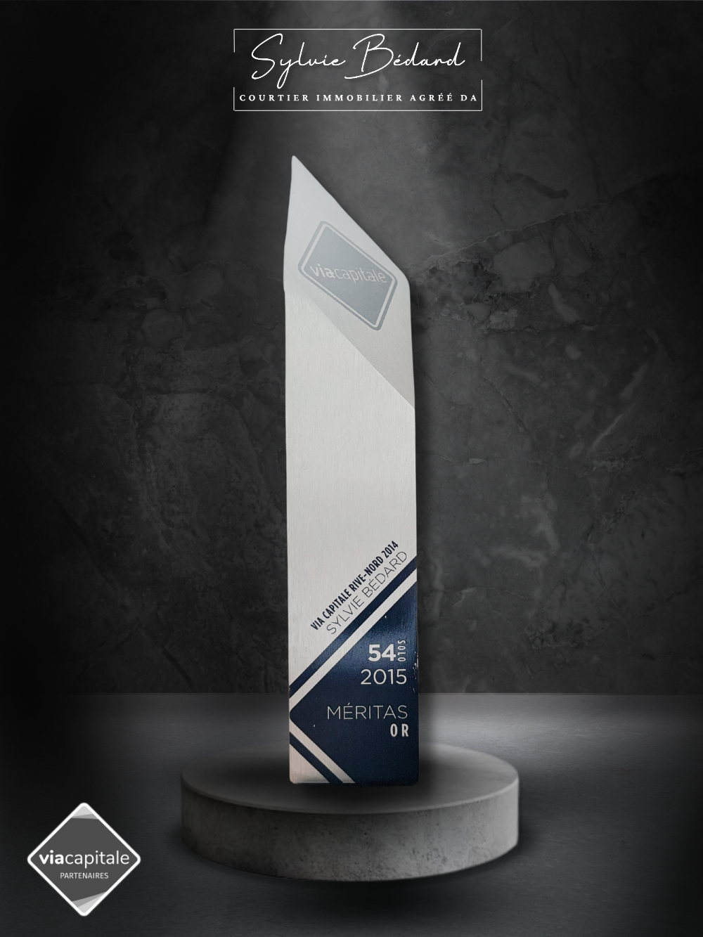 54e position sur plus de 1200 courtiers chez Via Capitale pour l'année 2014 à travers le Québec